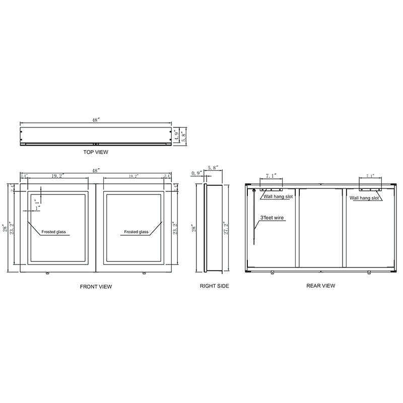 Paris Mirror Cabinet Harmony 48 x 28 Rectangle LED Illuminated Mirror Cabinets