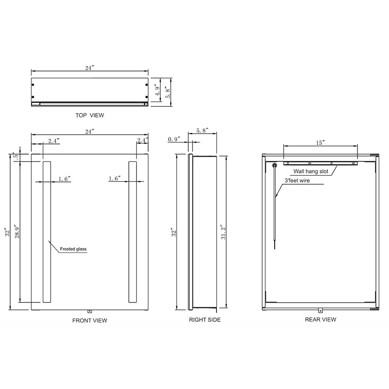 Paris Mirror Cabinet Verona 24 x 32 Rectangle LED Illuminated Mirror