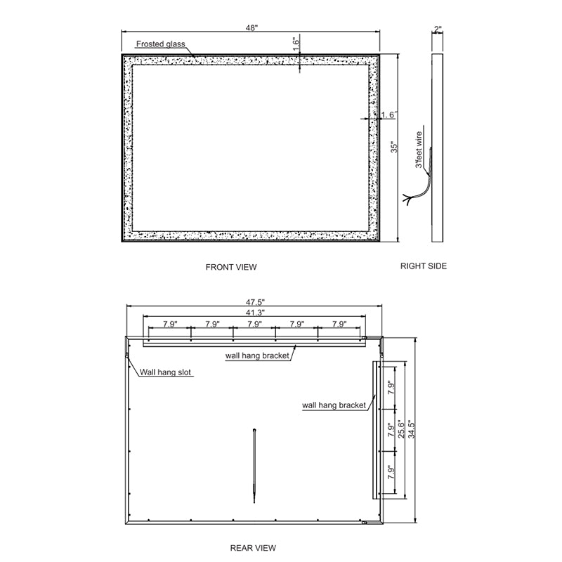 - Dimensions: 48"W x 35"H x 2"D