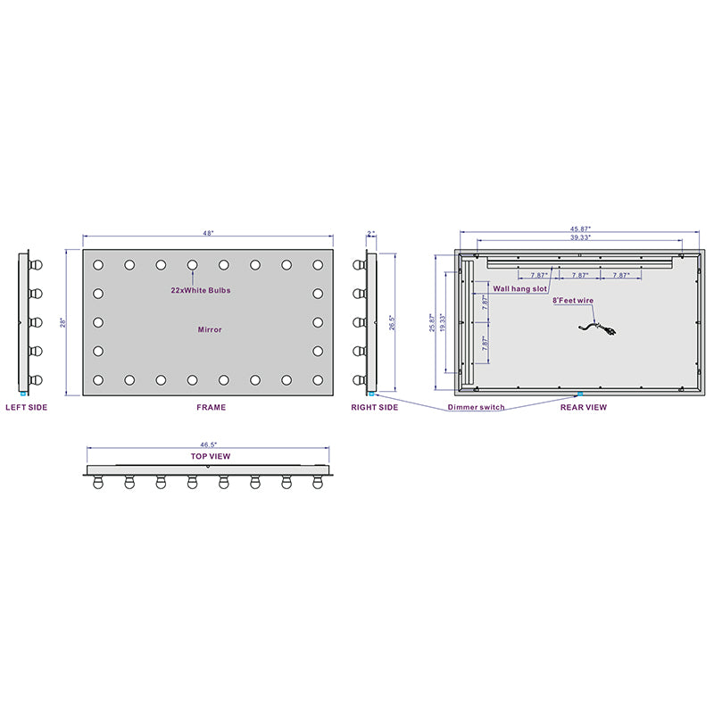 Paris Mirror Hollywood Princess 48 x 28 Rectangle LED Illuminated Mirror