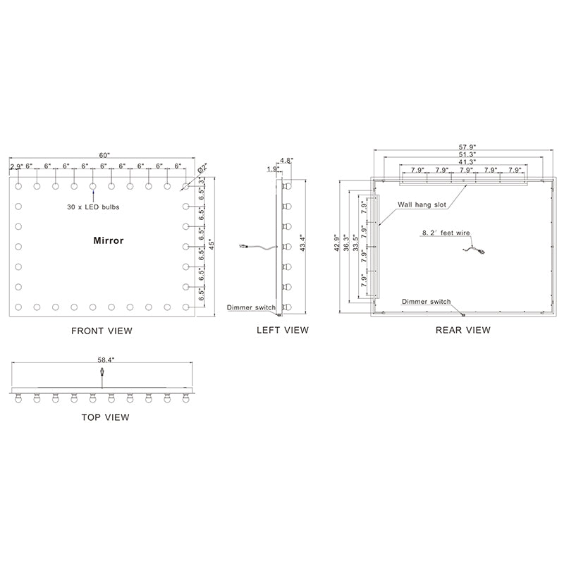 - Dimmable with a switch on the mirror