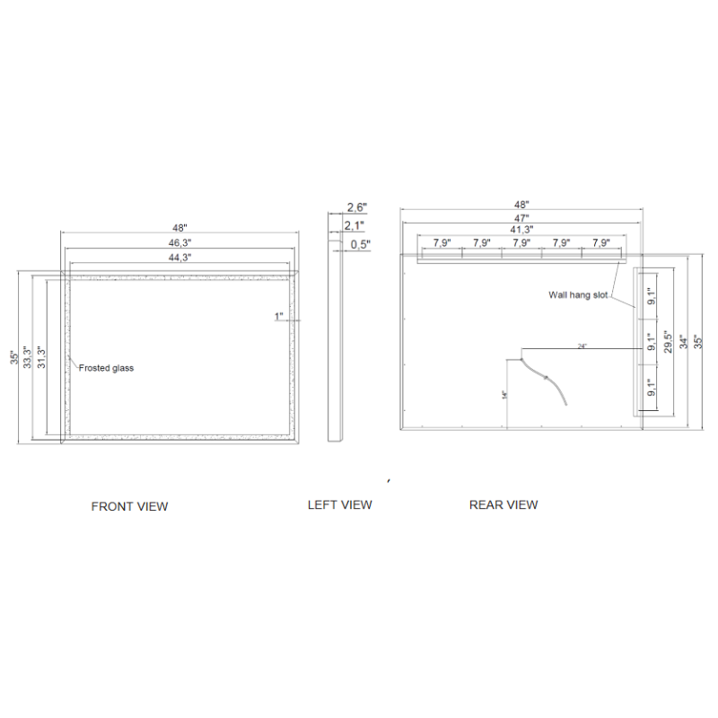 - Dimensions: 48"W x 35"H x 2.56"D