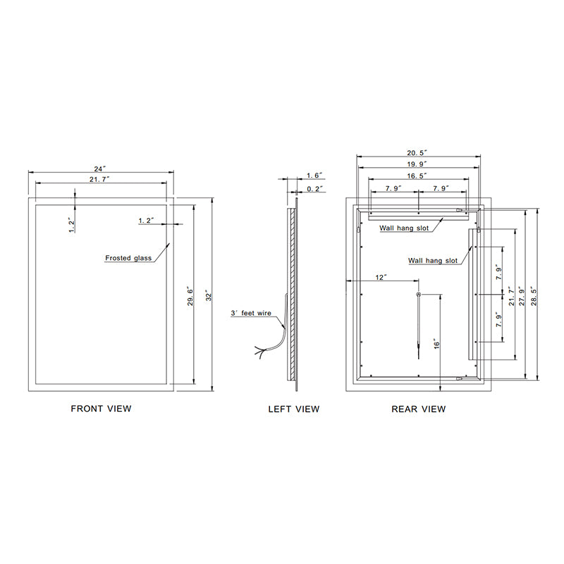 - Dimensions: 24"W x 32"H x 1.6"D