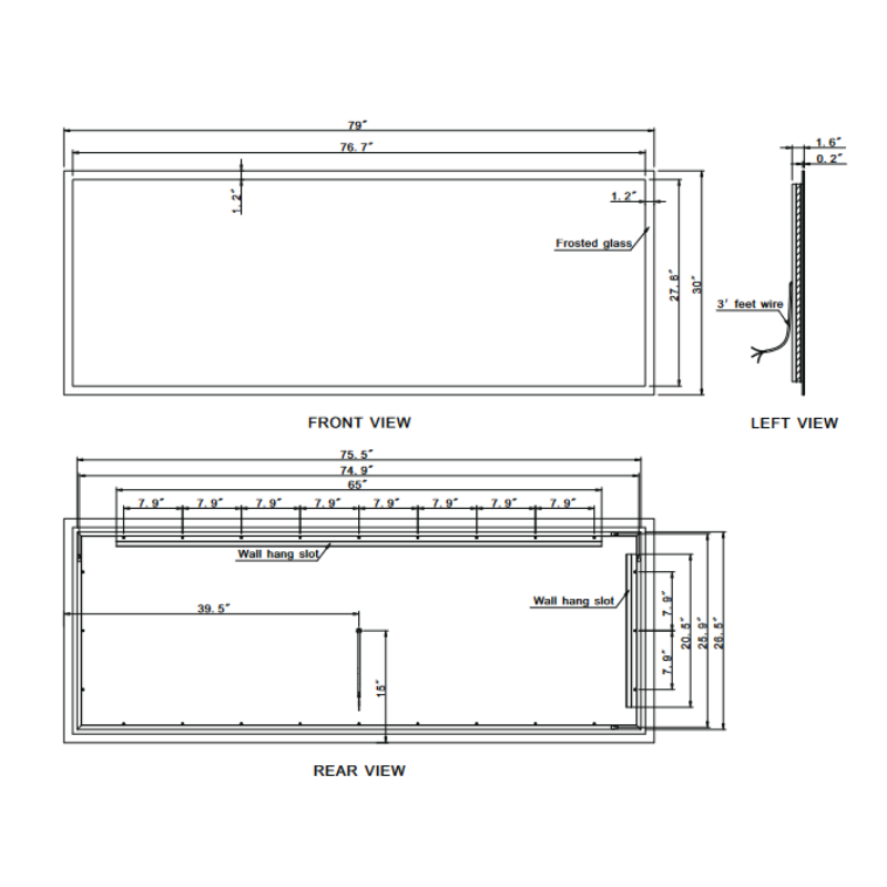 Paris Mirror Rectangle 79 x 30 LED Backlit Mirror