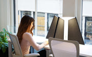 Corner office systemic and flexible, offering various degrees of privacy and power provision. The system comprises three elements: a glare-free, fully dimmable LED corner task light that incorporates power ports featured in its armature; a set of optional acoustic deterrent fabric panels; and an optional pocket accessory that provides a place to store a phone or tablet, keeping things clutter-free.