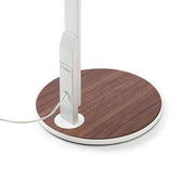 - Finish: Aluminum / Silver Base, Aluminum / Walnut Base, White / Walnut Base, White / Silver Base, Black / Black Base, Black / Walnut Base