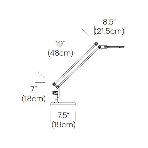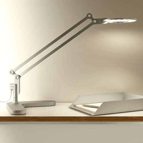 - Materials: Aluminum body, Polycarbonate lens, Zinc/steel Table Base