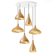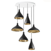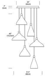 - Materials: Steel canopy, aluminum socket, spun aluminum shade, aluminum check-ring, PVC cord