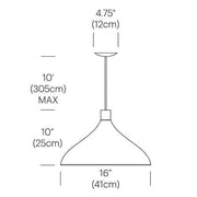 - Materials: Steel canopy, Aluminum socket, Spun Aluminum shade, Aluminum Check-Ring, PVC cord