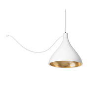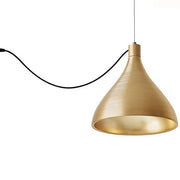 - Materials: Steel canopy, aluminum socket, spun aluminum shade, aluminum check-ring, PVC cord