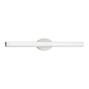 Parallel LED bath and vanity fixtures feature a tubular opal glass diffuser paired with a simple, modern oval metal canopy. An integrated LED source provides a variety of energy and cost savings benefits. Suitable for residential and commercial applications, and can be installed vertically or horizontally.