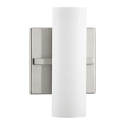 Tubular etched glass shades pop against a geometric back plate to create Colonnade, an LED bath and vanity collection. Modern style and continuous illumination are ideal for a variety of bath and vanity settings – including Mid-Century and Luxe. LED source features 3000K and 90 CRI benefits, as well as a lifespan of more than 42,000 hours.