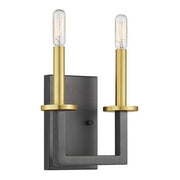 The Blakely collection two-light wall bracket is a fashion-forward design style. Celebrate geometric interplay with clean, straight lines. Finished in Graphite with satin brass accents, the Blakely collection is ideal for Modern and Traditional interiors.