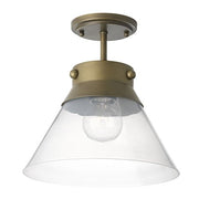 - Finish/Shade: Brushed Nickel/Clear Seeded glass Cone, Aged Brass/Milk Glass glass Cone