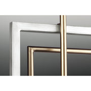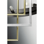 An array of geometric patterns in Adagio six-light linear chandelier is a nod to the musical description of a tender and melodic tone. The modern design features lights that are distributed around a circular Black band. Mixed metal elements, which are present in Brushed Silver and Brushed Brass accents, can complement monochromatic color palettes that are popular in homes today.
