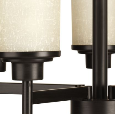 Five-light linear chandelier features a pleasingly simple Antique Bronze frame while visually interesting textured etched umber linen glass are complemented by a crisp clear edge accent. Create the sophisticated feel of modern, urban living in your home - no matter where you live.