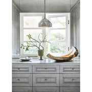 The Yerba group marries a modernized Moroccan shape with Mid Century geometric detail. Crafted of pierced metal in a Silver Ridge finish, the Yerba collection dome shaped pendant casts dramatic dappled light throughout a space.