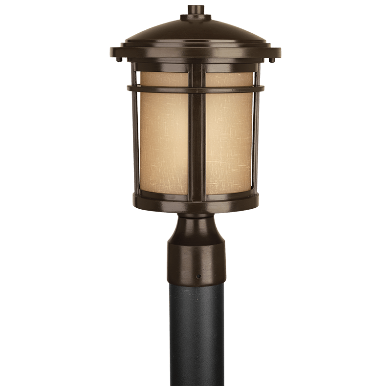 Illuminate your home with this remarkable post. Post lantern with etched or umber linen glass.