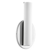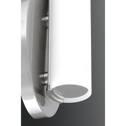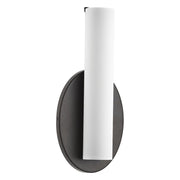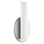 Parallel LED vanity and sconces feature a tubular opal glass diffuser paired with a simple, modern metal canopy. An integrated LED source provides a variety of energy and cost savings benefits. Suitable for residential and commercial applications.