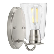 This versatile bath light will find a home in a variety of settings in need of generous illumination. A crisp clear glass shade rests on top of a vintage-style light base.