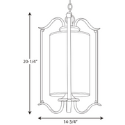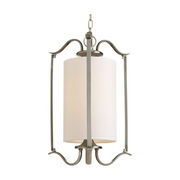 Harkening back to a simpler time, the Inspire Collection freshens traditional forms with flowing lines. Waving metal arms rush from the center to gracefully support off-white linen shades in this one-light large foyer fixture in Brushed Nickel.
