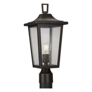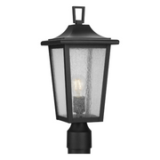 Feature a clean, tapered form reminiscent of traditional coach lanterns with a traditional outdoor post light from the Padgett Collection. The angular finial coated in a handsome textured black finish adds a contemporary flair to the classic design. Clear seeded glass adds a touch of extra visual texture. Fits 3 in. post (sold separately).