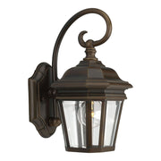 One-light wall lantern with clear beveled glass panels and scroll arm details.
