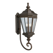 Two-light wall lantern with clear beveled glass panels and scroll arm details.