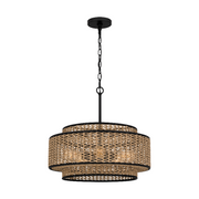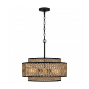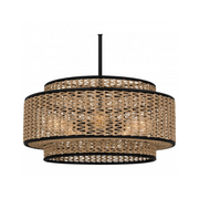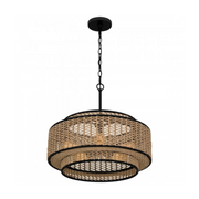 Part of the Quoizel Naturals collection, the Teton pendant spotlights global styling and natural elements. The classic drum silhouette is accentuated by a matte black finish and casual layers. A natural rope shade adds depth and contrast to the otherwise simple frame, providing a hint of coastal design.