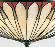 The softly arched wire arms of the Alahambre Collection are suspended over cream colored opalescent glass with wine accents gives this cone shaped shade the illusion of being dome shaped. Clear granite textured glass connects all the elements giving a multi dimensional web like feel.