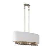This Savoy House Cameo 4-light linear chandelier is proof that opposites attract. Its soft white linen shade and rough, nature-inspired detailing finished in champagne luxe create a perfect pair.