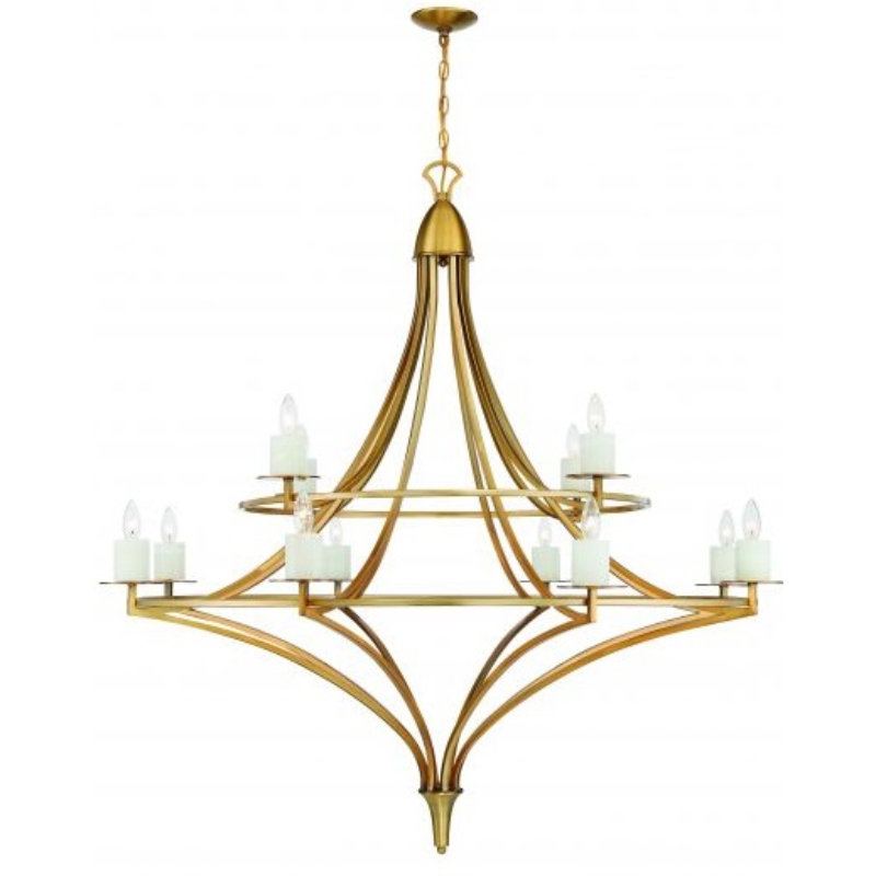 Large in size and bold in style, the Savoy House Director 12-light chandelier is perfectly suited to brighten and embolden bigger spaces. We took classic chandelier style and added a natural twist by using pieces of genuine stone for the candle sleeves. The white stone and the warm brass finish are a perfect match. Director is 50" in height and 50" in width. It uses twelve standard size bulb of up to 60 watts per bulb. Comes with 120" of chain and 144" of cord.