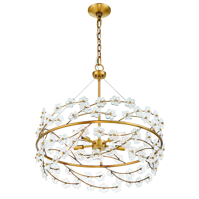 Treat your home to a bouquet of flowers with the Savoy House Camille 5-light chandelier. Sprigs of clear glass flowers burst forth from the central ring, which is finished in warm brass.