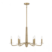 The Savoy House Cannon 6-light chandelier beautifully combines coastal, transitional and glamorous decor touches to create an extraordinary lighting look for today's stylish homes. Rope is wrapped around select elements of the structure, which is finished in warm brass. Cannon is 32" in diameter and has an adjustable height ranging from 19" to 73". It uses six candelabra size bulbs with a max of 60 watts per bulb. Comes with four 12" downrods and one 6" downrod, plus 80" of cord.