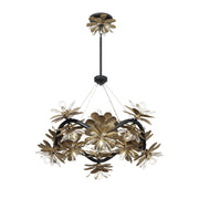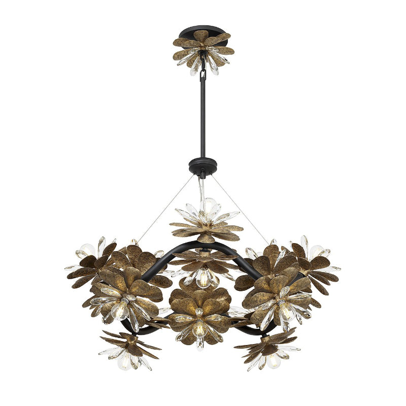 Let the beautiful Savoy House Giselle 16-light chandelier blossom in your home! Its undulating structure is festooned with flowers and finished in Delphine, a beautiful mix of gold and black tones. Petals of faceted crystal add another dimension of style.