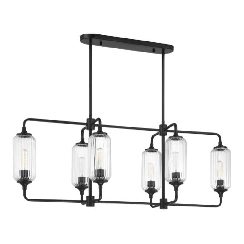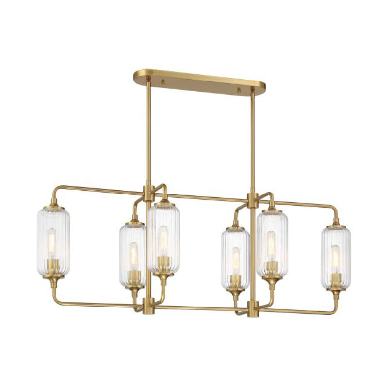 The Savoy House Holton 6-light linear chandelier showcases an inventive and geometric style with tall, rounded shades of clear ribbed glass and a slim.