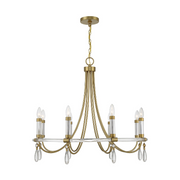 Get a unique mixed-metal take on lighting with this Savoy House Mayfair 8-light chandelier! Its central ring crafted from acrylic, long crystal drops and warm brass finish combine to create a true conversation starter.
