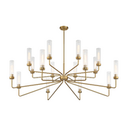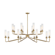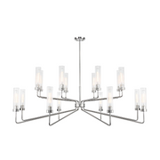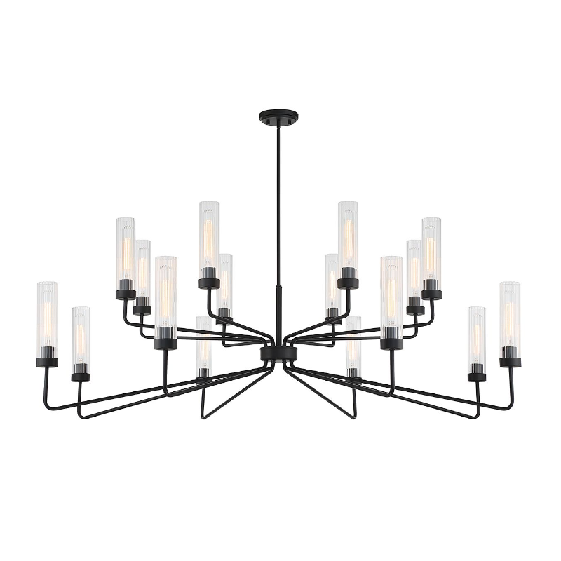 The expansive Savoy House Baker 16-light chandelier is the perfect way to brighten up a large room with lots of crisp, clean style. Two tiers of slender arms, each topped with a slim clear ribbed glass shade, radiate out from the center.