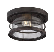 Light your outdoor spaces in retro-industrial style with the Barrett. This flush mount fixture has a sturdy, almost nautical aesthetic that looks great with many different architectural and decor styles.
