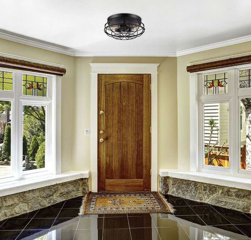 This Savoy House Scout 3-light ceiling flush mount brings a new twist on bold industrial style with its cage shade and satin nickel finish. Flush mounts can be used on the ceiling of pretty much any interior room, including foyers, hallways, stairways, closets, bathrooms, bedrooms, kitchens and more!