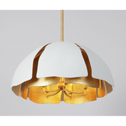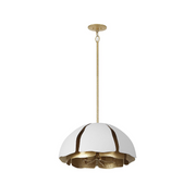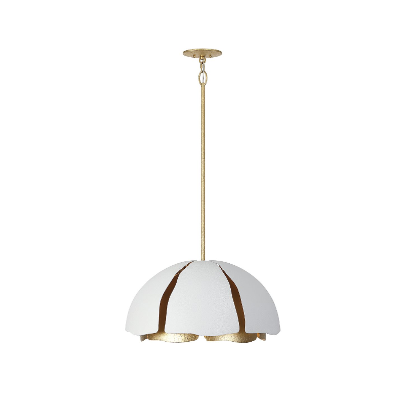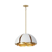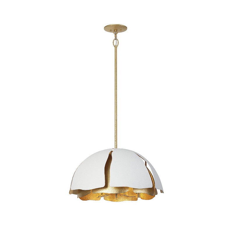 The Savoy House Brewster 5-light pendant showcases a softly beautiful look inspired by a blooming flower. Its curving metal petals are finished in cavalier gold and royal white to create a winning combination.