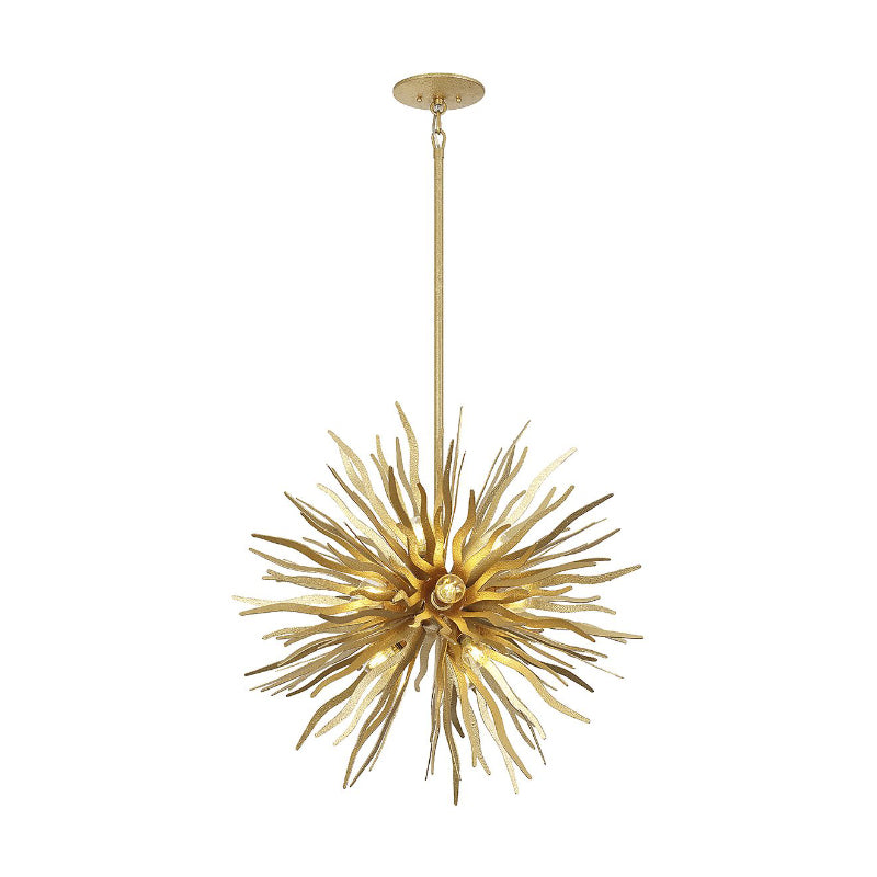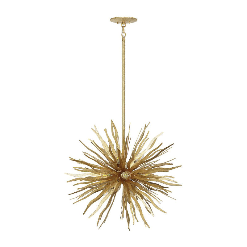 The Savoy House Killiam 12-light pendant takes iconic Sputnik style and gives it a softer, nature-inspired twist. Slender and beautiful arms bring a hint of motion, like kelp swaying underwater, and are finished in a wonderfully textured cavalier gold.