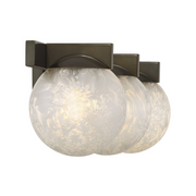The Savoy House Darien is a 3-light bath bar with fabulously chilly appeal. A minimal frame is finished in bold Warm Brass and holds three orbs of Ice Glass, adding sub-zero cool with tons of frosty texture.