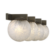 The Savoy House Darien is a 4-light bath bar with fabulously chilly appeal. A minimal frame is finished in bold Warm Brass and holds four orbs of Ice Glass, adding sub-zero cool with tons of frosty texture.