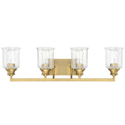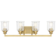Stunning shades of thick clear crackle glass are the stars of the Savoy House Hampton 4-light bath bar.