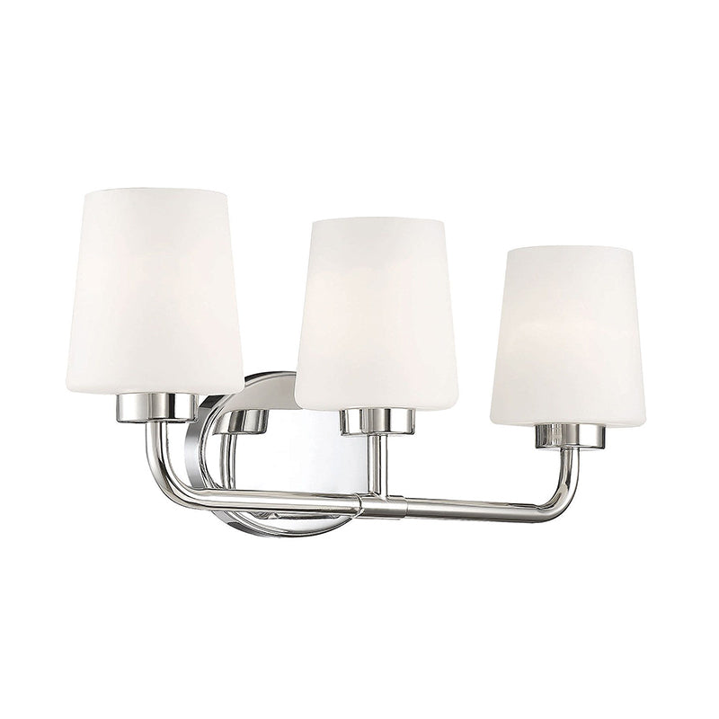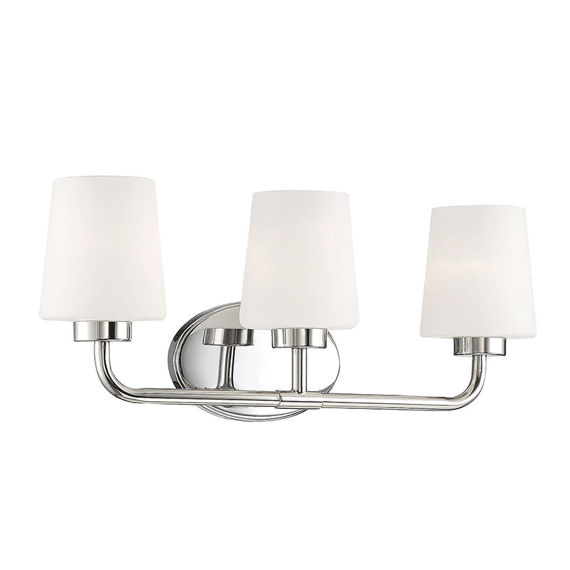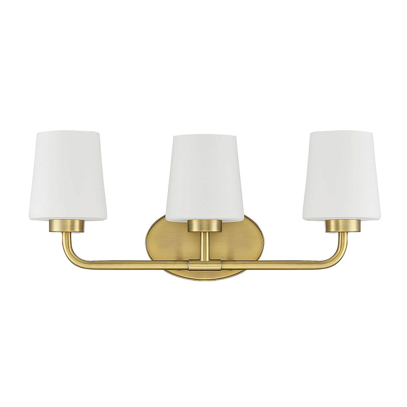 Add chic style to any bathroom with the Savoy House Capra 3-light bath bar. Its substantial structure features classic details along with white opal glass shades that are tapered like lamp shades and open at the top to give off a flattering glow.