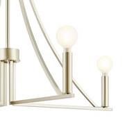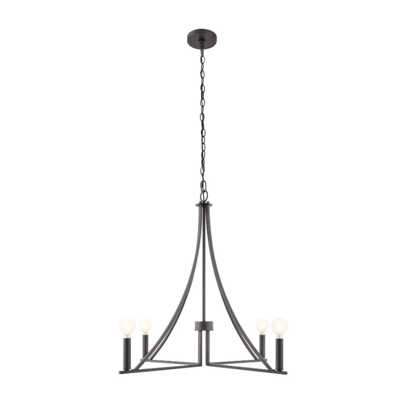 This intriguing 4-light chandelier features a unique silhouette that rethinks the typical structure of a chandelier! Its sleek arms curve gracefully and are finished in Brushed Nickel.
