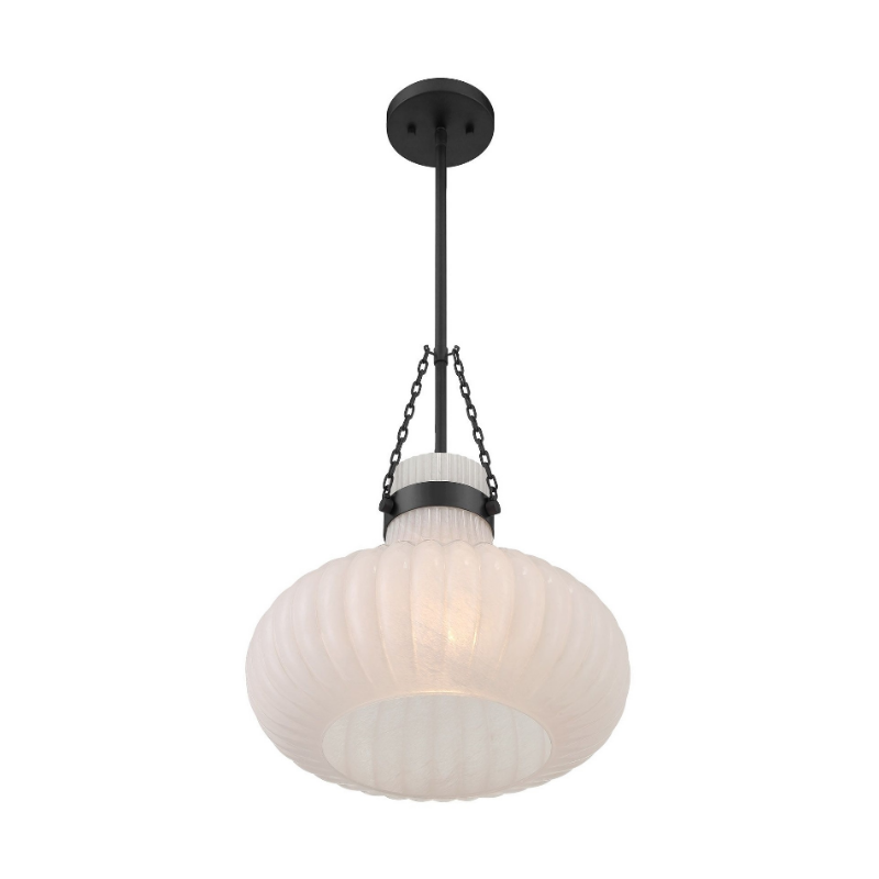Traditional style lighting is given an ethereal upgrade in this beautiful 1-light pendant. Its fluted ribbed glass shade is made from strie glass featuring dazzling swirls that draw the eye, soften the glow and work beautifully with finish.