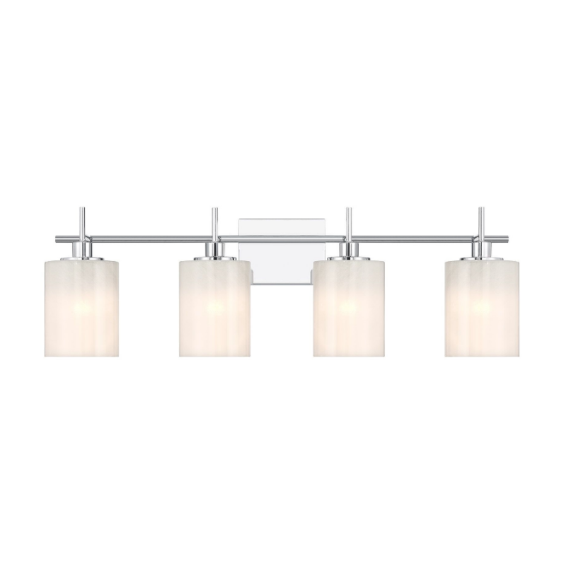 Brighten up your bath easily and beautifully with this 4-light bath bar, which showcases shades of strie glass featuring dazzling swirls that draw the eye, soften the glow and work beautifully with the Brushed Nickel finish.