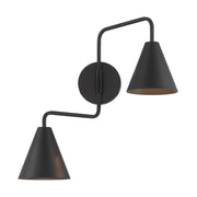 The boldly angled arms and shining Matte Black finish of this 2-light adjustable wall sconce combine to make it a true conversation piece. Customize it by adjusting the arms as needed! The shades are opaque, so they will concentrate and direct the light.